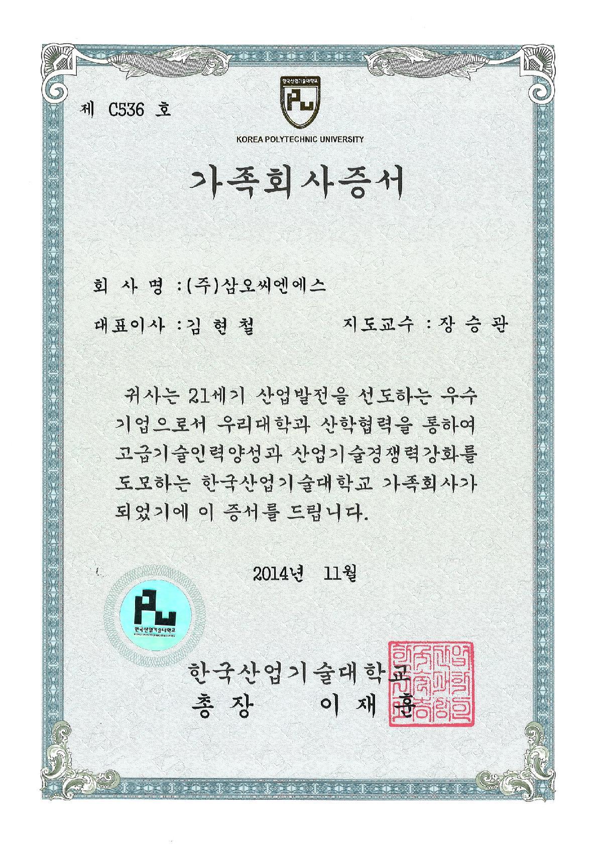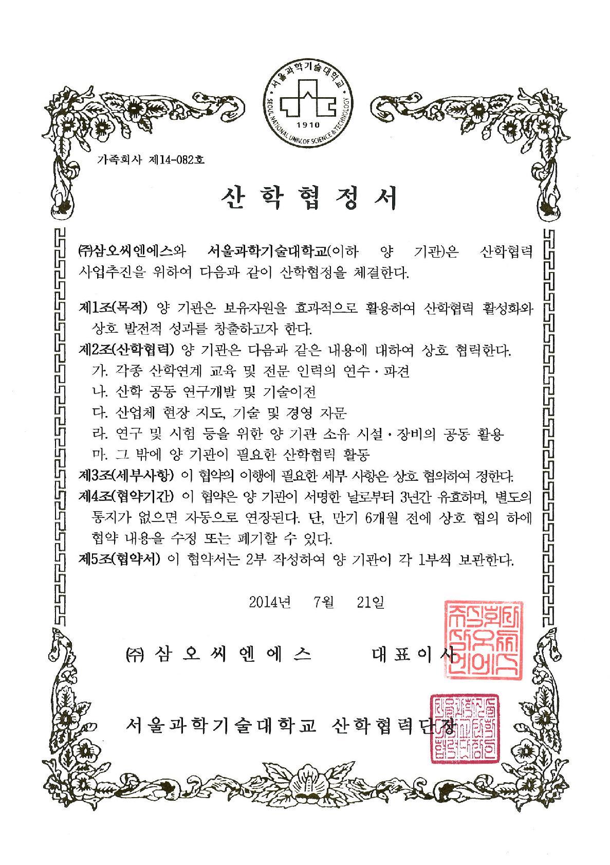 SamoCNS가 보유한 각종 인증서 및 특허, 산학 협정서등을 살펴보실 수 있습니다.